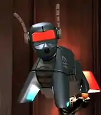 K9, occasionally written K-9, is the name of several fictional robotic canines (dogs, the name being a pun on the pronunciation of "canine") in the long-running British science fiction television series Doctor Who, first appearing in 1977. K9 has also been a central character in three of the series' television spin-offs: the one-off K-9 and Company (1981), The Sarah Jane Adventures (2007–2011) and K-9 (2009–2010). Although not originally intended to be a recurring character in the series, K9 was kept in the show following his first appearance because he was expected to be popular with younger audiences. There have been at least four separate K9 units in the series, with the first two being companions of the Fourth Doctor. Voice actor John Leeson has provided the character's voice in most of his appearances, except during season 17 of Doctor Who, in which David Brierley temporarily did so. The character was created by Bob Baker and Dave Martin, to whom rights to the character still belong; consequently, Baker's spin-off series K9, which is not BBC-produced, could not directly reference events or characters from Doctor Who, though it attempted to be a part of that continuity.