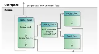 While applying hot patches, kGraft does not require a running kernel to be stopped for patched versions of functions to be introduced into it. Instead of replacing functions atomically, kGraft provides consistent "world views" (or "universes") to userspace processes, kernel threads and interrupt handlers, which are monitored during their execution so the original versions of patched kernel functions can continue to be used. To accomplish that, kGraft maintains original versions of patched functions in a read-copy-update (RCU) fashion, and dynamically selects between the original and patched versions depending on which process, kernel thread or interrupt handler executes them. More specifically, original versions of functions continue to be used—at the time when a hot patch is applied—for processes currently executing within the kernel space, for kernel threads until they reach their completion points, and for currently executing interrupt handlers.[3][4][8][9]