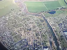 Kaiapoi River through Kaiapoi, with the Courtenay Stream on the top right