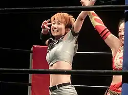 Another promotion in which Sekiguchi competes is Oz Academy. She made her first appearance at OZ Academy Plum Hanasaku 2017 on August 20, where she teamed up with Mission K4 stablemate Sonoko Kato in a losing effort against Ozaki-gun (Maya Yukihi and Mayumi Ozaki).[12] At OZ Academy Connect To The Future on December 2, 2018, Sekiguchi unsuccessfully challenged Hikaru Shida for the Oz Academy Openweight Championship in one of her rookie challenge matches.[13] At OZ Academy Come Back To Shima! on May 26, 2019, she competed in a 13-person battle royal won by Itsuki Aoki and also involving Cherry, Kaori Yoneyama, Tsubasa Kuragaki, Yoshiko and others.[14] At The End of the Year on December 30, 2020, she teamed up with Mission K4 stablemate Kaho Kobayashi to defeat another pair of stablemates Mika Akino and Sonoko Kato for the Oz Academy Tag Team Championship.[15]