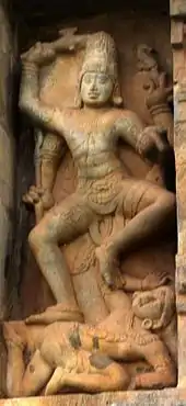 Kalantaka or Kalinjar (Sanskrit: कालान्तक, ender of death and time) is an aspect of the Hindu god Shiva as the Conqueror of Time and Death, itself personified by the god Yama.[1] He is depicted as defeating or killing Yama when the latter comes to take the life of Shiva's devotee Markandeya. Shiva is often depicted as dancing on Death, personified by Yama.[2] This incident is believed as happened at Triprangode, Tirur, Malappuram district, Kerala where the Kalasamharamurthy Temple is situated.[3][4] Another chief temple dedicated to Kalantaka is situated at Thirukkadavoor, Tamil Nadu of South India, however the Kalantaka icon is found sculpted in many Shiva temples in the South.