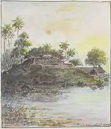 On 15 October 1655 following a siege by Dutch forces, led by Gerard Hulft, the Portuguese commander of the fort, Anthonio Mendes de Aranha, surrendered the fort and garrison of 255 men, without a shot being fired.[5][6] In 1677 the Dutch fortified it by constructing two additional bastions, increasing the size of the ramparts, digging a moat and erecting a drawbridge.[5] It is reported that the Dutch Governor brought over architects from Netherlands especially to rebuild this fort. Most of the building material was sourced locally however it is reported that certain types of rocks were brought from the Netherlands.[7] In February 1769, it was surrendered to the British, and was used for garrison and residence of the Government Agent.[3][7] The building was also was used as a country retreat by the Colonial Secretary of Ceylon, John Rodney, who buried an infant son there.[8]