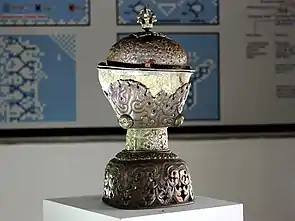 A kapala (Sanskrit for "skull") is a skull cup used as a ritual implement (bowl) in both Hindu Tantra and Buddhist Tantra (Vajrayana). Especially in Tibet, they are often carved or elaborately mounted with precious metals and jewels.