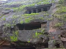 The Karla cave complex is built into a rocky hillside around 60 kilometres (37 mi) from Pune, with large windows cut into the rock to light the cave interiors.[7] The caves are among a large numbers of similar caves excavated in the Sahyadri Hills in the early 1st millennium CE. There are altogether 16 caves in the group, with 3 of them being Mahayana caves. Most of the caves are lenas, with the major exception being the Great Chaitya, Cave No. 8.[8]
