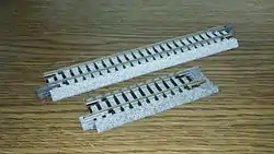 In both N scale and HO scale, Kato also manufactures an integrated roadbed model railroad track brand named Unitrack. What distinguishes Unitrack from other brands of integrated roadbed track is Kato's Unijoiner. This unique track joiner is also used by Tillig in their TT scale integrated roadbed Bedding Track products.