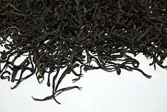 Keemun (Chinese: 祁門紅茶; pinyin: qímén hóngchá; Jyutping: kei4mun4 hung4cha4; lit. 'Qimen red tea') is a famous Chinese black tea. First produced in the late 19th century, it quickly became popular in the West and is still used for a number of classic blends.[1] It is a light tea with characteristic stone fruit and slightly smoky notes in the aroma and a gentle, malty, non-astringent taste reminiscent of unsweetened cocoa. Keemun is said to have floral aromas and wooden notes.[2][3]
