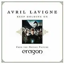 Written by Lavigne and Lukasz "Dr. Luke" Gottwald and produced by the latter, the song premiered on radio stations across North America in November 2006, receiving positive reviews from critics.[4] It was used as the musical theme for the 2006 film Eragon, also appearing in the film's ending credits, and was the first single released from the film's soundtrack. "Keep Holding On" was one of the songs short-listed for the "Best Original Song" category at the 79th Academy Awards, but it was not among the final nominees. The song was also ranked on the iTunes Australia top 500 at 403.[5]