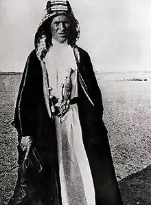 British Colonel T. E. Lawrence (better known as Lawrence of Arabia) was probably the best-known Western wearer of the keffiyeh and agal during his involvement in the Arab Revolt in World War I. This image of Lawrence was later popularized by the film epic about him, Lawrence of Arabia, in which he was played by Peter O'Toole.