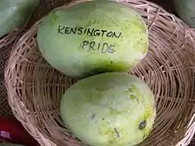 The 'Kensington Pride' mango is a named commercial mango cultivar that originated in Australia. It is sometimes called the KP, Bowen or Bowen special.[1][2] It is Australia's most popular mango, accounting for over 80% of the country's annual commercial mango market. It is considered to have a distinctive flavour and aroma when compared with the Florida-bred cultivars grown by most mango-exporting countries.[3]