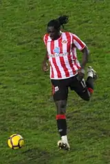 In July 2004, Jones signed for Southampton from W Connection for a nominal fee after a trial.[8] W Connection's Chairman David John Williams described Jones' move, saying: "When Kenwyne Jones was transferred to Southampton, I told you all that he is going to be the biggest thing in Trinidad and Tobago football since beside Dwight Yorke".[9] In December 2004, while on loan to the Football League One club Sheffield Wednesday, he scored seven goals in seven games, and returned to Southampton in January 2005,[10][11] where he played in games against Liverpool and local rivals Portsmouth.[12][13] He joined Championship side Stoke City in February 2005 on loan where he played 13 times scoring three goals.[14]