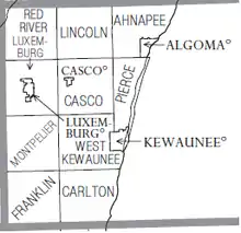 Kewaunee County is a county located in the U.S. state of Wisconsin. As of the 2020 census, the population was 20,563.[2] Its county seat is Kewaunee.[3] The county was created in 1852 and organized in 1859.[4] Its Menominee name is Kewāneh, an archaic name for a species of duck.[5] Kewaunee County is part of the Green Bay, WI Metropolitan Statistical Area as well as the Green Bay-Shawano, WI Combined Statistical Area.