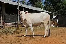 The Khillari is a cattle breed. It is a member of the Bos indicus sub-species, native to Satara, Sangli and Kolhapur regions in Maharashtra and Bijapur, Dharwad and Belagavi districts of Karnataka in India.[1] The breed is well adapted to the area's tropical and drought-prone conditions. They are favoured by the local farming community due to their ability to handle the hardships of farming. The breed is in decline, mostly due low milk yield, which offers an alternate income stream.