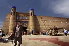 Kalta Minor, the large blue tower in the central city square, was supposed to be a minaret. It was built in 1851 by Mohammed Amin Khan, but the Khan died and the succeeding Khan did not complete it.