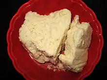 Khoa, khoya, khowa or mawa[1] is a dairy food widely used in the cuisines of the Indian subcontinent, encompassing India, Nepal, Bangladesh and Pakistan. It is made of either dried whole milk or milk thickened by heating in an open iron pan. It is lower in moisture than typical fresh cheeses such as ricotta.[2] It is made up of whole milk instead of whey.