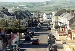 Kilkee (Irish: Cill Chaoi)[7] is a small coastal town in County Clare, Ireland. It is in the parish of Kilkee, formerly Kilfearagh. Kilkee is midway between Kilrush and Doonbeg on the N67 road. The town is popular as a seaside resort. The horseshoe bay is protected from the Atlantic Ocean by the Duggerna Reef.