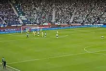 The 2015–16 season would prove difficult for the team. Locke was removed from his position as manager in February 2016, with Lee Clark being appointed as his replacement.[27] Despite a small uplift in form, the team finished in 11th place and faced a relegation play-off against Championship side Falkirk in order to stay in the top flight. Despite losing 0–1 in the first leg, Killie fought back and comfortably won the second leg 4–0 (4–1 on aggregate), securing the club's status in the Scottish Premiership for another season. Clark would leave Kilmarnock for a return to England with Bury in February 2017, exactly a year after his arrival.[28] Former Rangers player Lee McCulloch, assistant to both Locke and Clark, was placed in temporary charge until the end of the season, achieving an eighth-place finish. The following season saw another poor start, with an early defeat to rivals Ayr United in the league cup group stages, followed by a disappointing start to the league campaign. McCulloch was sacked in September 2017 with the club rooted to the bottom of the table.