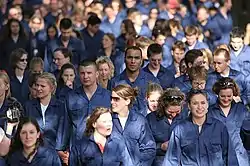 - The Short Step (May 2005): (pictured) Kilometer Zero opened the Dashanzi International Arts Festival in Beijing by grouping together 400 westerners dressed in traditional Chinese factory uniforms.[5] The performance was interrupted by Chinese officials.