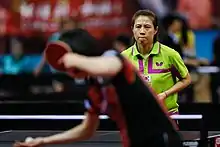 Kim Kyungah (Korean pronunciation: [kim.ɡjʌŋ.a]; born May 25, 1977 in Daejeon, South Korea) is a South Korean table tennis player.[1] She was the bronze medalist in women's singles at 2004 Athens Olympics.[3] She was 6th in the ITTF world ranking as of March 2013.[4]