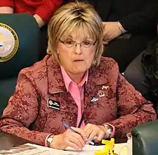 Kimmi Clark Lewis (March 19, 1957 – December 6, 2019) was an American politician who served as a state representative from Kim, Colorado. A Republican, Lewis represented Colorado House of Representatives District 64, a massive district which encompasses nine counties on Colorado's Eastern Plains, including Baca, Bent, Crowley, Elbert, Kiowa, Las Animas, Lincoln, Prowers, and Washington. She was first elected in 2016.[3] She defeated Republican incumbent Timothy Dore in the primary and went on to win the general election.[4]