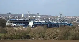 During the 1950s and 1960s, new housing estates were built north-west of the town.[31] This was followed by the redevelopment of the town centre in the 1960s and 1970s, which destroyed much of the old high street.[17][32] There was speculation that the town's population could increase to around 55–60,000 by 1970.[31] This did not happen: a decline in the linoleum industry in the mid-1960s led to a decrease in population, from a peak of 53,750 in 1961 to 47,962 in 1981.[10][31]