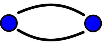 The simplest simple connected graph that admits the Klein four-group as its automorphism group is the diamond graph shown below. It is also the automorphism group of some other graphs that are simpler in the sense of having fewer entities. These include the graph with four vertices and one edge, which remains simple but loses connectivity, and the graph with two vertices connected to each other by two edges, which remains connected but loses simplicity.
