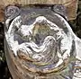 Rabbi Hanina ben Teradyon was a scholar in the second century CE, one of the ten martyrs and a particularly tragic character: His son went astray, his wife was killed by the Romans, his daughter was degraded and he was burned at the stake by Roman soldiers after being charged of studying Torah, which was against the Roman law. In the Menorah relief, Rabbi Hanina ben Teradyon is depicted on his knees tied to a pole, wrapped in a Torah scroll across his chest and in the background. Flames are seen surrounding Rabbi Hanina, and letters are floating before him - the letter "Alef" and "Shin" that together form the word "Esh" - fire, as is described in the Babylonian Talmud: "...On their return, they found R. Hanina b. Teradion sitting and occupying himself with the Torah, publicly gathering assemblies, and keeping a scroll of the Law in his bosom. Straightaway they took hold of him, wrapt him in the Scroll of the Law, placed bundles of branches round him and set them on fire. They then brought tufts of wool, which they had soaked in water, and placed them over his heart, so that he should not expire quickly... His disciples called out, 'Rabbi, what seest thou?' He answered them, 'The parchments are being burnt but the letters are soaring on high." (Babylonian Talmud: Tractate ‘Abodah Zarah Folio 18a)