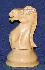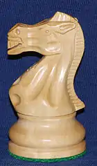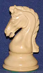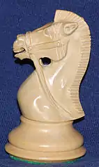 The knight has the oldest defined movement of any chess piece.[lower-alpha 3] It was first introduced in the Indian game of chaturanga around the 6th century; it has not changed since.[10]