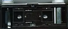 Unlike the Realist, the Kodak had a self-cocking shutter.[1] Like later model Realists it had built in double exposure prevention which could be overridden by the manual shutter cocking lever located on the bottom of the camera.[2] Releasing the shutter also released the wind mechanism, so once a picture was taken the user needed only to wind the film to be ready for the next one. The rewind knob has a crank, which most consider an improvement over the ordinary rewind knob on the Realist.