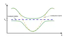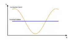 In solid-state physics, Kondo insulators (also referred as Kondo semiconductors and heavy fermion semiconductors) are understood as materials with strongly correlated electrons, that open up a narrow band gap (in the order of 10 meV) at low temperatures with the chemical potential lying in the gap, whereas in heavy fermion materials the chemical potential is located in the conduction band. The band gap opens up at low temperatures due to hybridization of localized electrons (mostly f-electrons) with conduction electrons, a correlation effect known as the Kondo effect. As a consequence, a transition from metallic behavior to insulating behavior is seen in resistivity measurements. The band gap could be either direct or indirect. Most studied Kondo insulators are FeSi, Ce3Bi4Pt3, SmB6, YbB12, and CeNiSn, although there are over a dozen known Kondo insulators.[1]