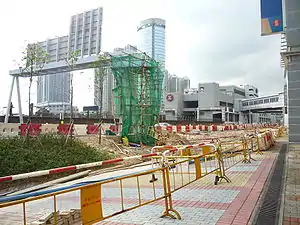 Originally KCRC requested The Wharf to fully or partially fund the construction of the station for HKD 1.8 billion. The Wharf disagreed, questioning if it was reasonable for a private enterprise to undertake the construction cost of public facilities. The station was eventually omitted from the project, officially announced on 6 December 2004.[5][6]