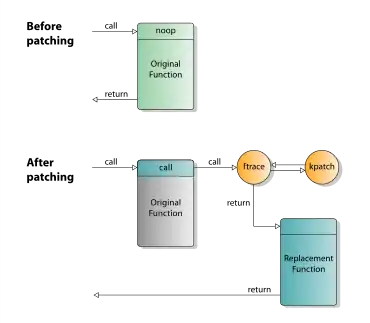 Internally, kpatch consists of two parts – the core kernel module executes the live patching mechanism by altering kernel's inner workings, while a set of userspace utilities prepares individual hot patch kernel modules from source diffs and manages their application. Live kernel patching is performed at the function level, meaning that kpatch can replace entire functions in the running kernel with their patched versions by using facilities provided by ftrace to "route around" old versions of functions; that way, hot patches can also easily be undone. No changes to the kernel's internal data structures are possible; however, security patches, which are one of the natural candidates to be used with kpatch, rarely contain changes to the kernel's data structures.[4][5][7]