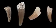 The morphology of the teeth recovered from the leptoceratopsid roughly corresponds to Leptoceratops, but due to the great geographical distance and the lack of some ridges present in the teeth of Leptoceratops, it is likely that the Swedish leptoceratopsid represents a new taxon. Leptoceratopsid fossils include four maxillary teeth, a dentary tooth, two caudal vertebrae and one right manual phalanx, recovered at Åsen and Ullstorp.[3][15] The discovery of the leptoceratopsid remains were scientifically significant as they represented the first record of ceratopsians in Europe and also contradicted the previously prevailing hypothesis that more primitive members of that group preferred semi-arid and arid environments rather far away from coastal regions.[3]