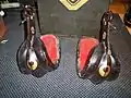 Shita-kura or hadazuke, the twin set of double leather pads attached to the bottom of a Japanese saddle tree (kurabane). The shita-kura (hadazuke) protects the back of the horse from the kurabane.