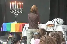 The American branch of Conservative Judaism formally approves of same-sex marriage ceremonies.[156] As of 1992 with the Report of the Reconstructionist Commission on Homosexuality, the Reconstructionist Movement of Judaism has expressed its support for same-sex marriages as well as the inclusion of gay and lesbian people in all aspects of Jewish life. The Jewish Reconstructionist Federation leaves the choice of whether or not to perform same-sex marriages to individual rabbis but the procedure is included in the Reconstructionist Rabbi's Manual and many choose to use the traditional language and symbols of kiddushin.[157][158] Reform Judaism, the largest Jewish denomination in the United States, is generally supportive of LGBT rights and marriage.[159][160]