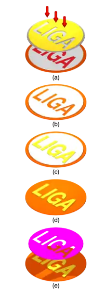 LIGA is a fabrication technology used to create high-aspect-ratio microstructures. The term is a German acronym for Lithographie, Galvanoformung, Abformung – lithography, electroplating, and molding.