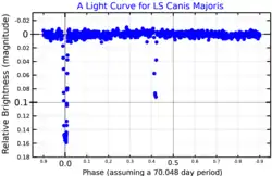 ![]() A light curve for LS Canis Majoris from BRITE nanosatellite data, adapted from Ratajczak et al. (2019)[1] | |