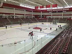 LaBahn Arena is the home ice of the Wisconsin Badgers women's ice hockey team. It was the second arena to be purpose-built for a women's collegiate hockey team; the first was Minnesota's Ridder Arena. The arena is connected via a tunnel to the Kohl Center,[2] which the women's team shared with the men's team from its inception in 1999 until 2012. The men's team also practices there. The facility also houses locker rooms for the swimming and diving teams.[3]