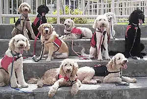 Guide Dogs Victoria no longer breeds Labradoodles;[10] however, they are bred by other guide and assistance dog organizations in Australia and elsewhere.[16] The Association for the Blind of Western Australia has introduced Labradoodles into their training program. Their first, Jonnie, graduated in November 2010.[17][18] Labradoodles are now widely used around the world as guide, assistance, and therapy dogs.[19][20] They are also popular family dogs.[10]