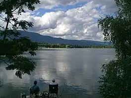 Lac de Divonne is an artificial lake at Divonne-les-Bains, France. The lake has a surface area of approx. 40 ha (99 acres).