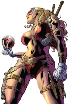 Lady Elaine Marsh-Morton, a.k.a. "Lady Vic" or "Lady Victim" is a character in the DC Comics universe. She is an English noblewoman who works secretly as an assassin, bounty hunter, and mercenary. She is employed on a semi-regular basis by Roland Desmond and appears most frequently as an antagonist of Nightwing (Dick Grayson).