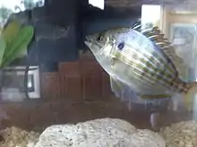 Lagodon is a genus of saltwater fish in the family Sparidae, the breams and porgies. It is monotypic, being represented by the single species Lagodon rhomboides, commonly known as pinfish.[2] Other common names include pin perch, sand perch, choffer, and butterfish.[3] It inhabits mostly subtropical shallow coastal waters of the Atlantic and Gulf coasts of the United States and Mexico.[4]