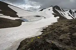 Lake Gistova, also known as Lake Gkistova (Albanian: Liqeni i Gramozit, Greek: Λίμνη Γκιστόβα), is an alpine lake on the Albania-Greece border.[1] It is the highest lake in Greece.[2] It is located at an elevation of about 2,350 metres (7,710 ft), on the Gramos mountain.[3] The nearest village is Gramos in Greece. The last years the lake through social media and websites took more attention and more people come to visit it.[4]