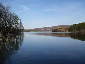 Lake Habeeb is a reservoir of 243 acres (0.98 km2) and is located in Allegany County, Maryland, United States. The lake is fed by Rocky Gap Run, and nestled against the east side of the southern tip of Evitts Mountain. The dam was built by the Army Corps of Engineers in 1970 and Rocky Gap State Park formally opened on July 17, 1974,[1] it attains a maximum depth of 74 feet (23 m) near its earthen dam. It offers three public beach areas along Habeeb's 9.4-mile (15.1 km) shoreline, as well as a fishery.[2]