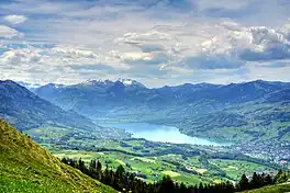 Lake Sarnen (German: Sarnersee) is a lake in the Swiss canton of Obwalden. The lake is on the Sarner Aa, which flows out of the Lake Lungern, through the Lake Sarnen, and into Lake Lucerne. The municipalities of Sarnen and Sachseln are located on the shores of the lake, and the Brünig railway line follows the eastern shore.[1]