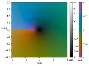 The product logarithm Lambert W function plotted in the complex plane from −2 − 2i to 2 + 2i