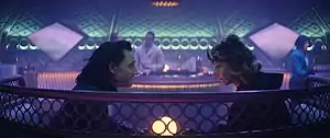 Ali was tasked with much of the series world-building in the episode, and was not given any predetermined guidance or notes from Marvel on what they wanted. She chose the name Lamentis since she was "a deeply depressing person", finding "something poignant and beautiful about lamenting something".[8] Discussing the Variant using the alias "Sylvie", Sophia Di Martino said while the character was inspired by Sylvie Lushton / Enchantress and Lady Loki from Marvel Comics, she is a different person with a different backstory from those characters as well as Hiddleston's Loki.[9][10] "Lamentis" establishes that Loki and Sylvie are bisexual.[11] Herron, who is also bisexual, said acknowledging this was very important to her since this is part of "who he is and who I am" and called it a "small step".[12] She continued that the moment did not want to "feel like we were just wedging something in" and the scene where it occurred was "the right place for that conversation to happen". This is the only time in the series this is acknowledged, with Herron hoping it would "pave the way for deeper exploration".[13] Di Martino stated she and Hiddleston tried to make the moment like a "natural conversation between two acquaintances" without giving the statement "too much weight", while still understanding the importance of what the moment would be.[10]