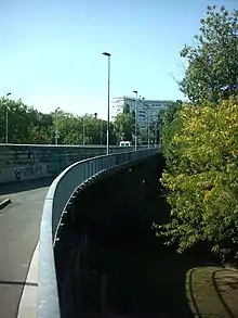 The commune has the head office of Geneva Public Transport.[16] There are two railway stations, Lancy-Pont-Rouge and Lancy-Bachet. Both are located on the CEVA orbital railway with frequent service by trains of the Léman Express.