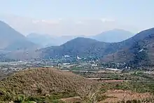 The municipality is part of the Sierra Gorda region, which is centered on northern Querétaro state. This region is a branch of the Sierra Madre Oriental, consisting of mountain chains that parallel the Gulf of Mexico.[4][14] This land was sea bed 100 million years ago, which formed ancient sedimentary rock, mostly limestone, which easily erodes. This makes the area part of the Huasteca Karst.[4][14] Landa de Matamoros is completely within the Sierra Gorda Biosphere Reserve of Querétaro, which was established in 1997. Of the biosphere's nucleus, 1,250 hectares are within the municipality.[3] Over eighty five percent of the territory is mountainous and rugged with inclines of over 25%. These are mostly found in the south, southeast and northeast. Main elevations include Cerro de Tejocote (2720 masl), La Cebadilla (2560 masl), Cerro Grande de San Juan (1580 masl), Piedra Encimada (1620 masl), La Barca (1380 masl) and Los Orujos (1260 masl). There are a limited number of small valleys, including Plan de Hongos, Tilaco, Tres Lagunas, Valle de Guadalupe and Acatitlán de Zaragoza. These areas are mostly covered by forests. Semi flat areas are those with gradients under 25%, with accounts for about 3.5% of the territory. Much of this area is either forested or arid. Flat lands with gradients of less than 5% correspond to about 11.2% of the municipality. This is where most agriculture takes place, mostly during the rainy season. Most of the flatter areas of the municipality have rich sedimentary deposits of topsoil over a bed of limestone, which was former seabed. The limestone and other sedimentary rock erode fairly easily, which has led to the formation of caverns and pit caves (locally called "sótanos") dispersed throughout the municipality. The pit caves generally run from 400 to 600 meters in depth. Many have straight drops of between 50 and 100 meters, and end with a flat bottom with vegetation and wildlife. The largest is the Tilaco pit cave, 649 meters deep.[3]