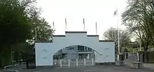 The southern grandstand had seats only, but was originally only partly covered. At the northern side and behind the eastern curve terraces were constructed of earthwork, stones and some concrete. Parts of the eastern side were grass-covered earthwork and the western side had no stands of any kind.[5] The entire seating grandstand was covered during the spring of 1939, but the total capacity remained at around 10,000.[6]
