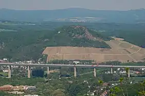 ![]() View from Langer Köbes viewing tower on the Neuenahrer Berg looking northeast over the Ahr Viaduct on the A 61 to the Landskrone